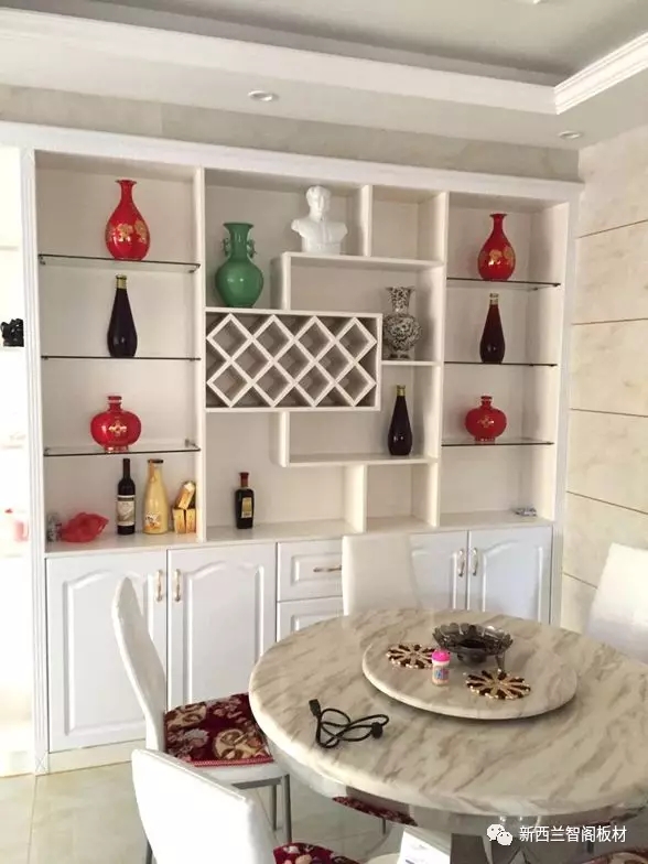 6、賀擴軍(賀師傅設計制作的中式家具搭配在一派田園風的沙發座椅里,毫無違和感,時尚混搭、別具一格。柜子細節自不必說,整體設計非常棒,板材花色古典雅致。)