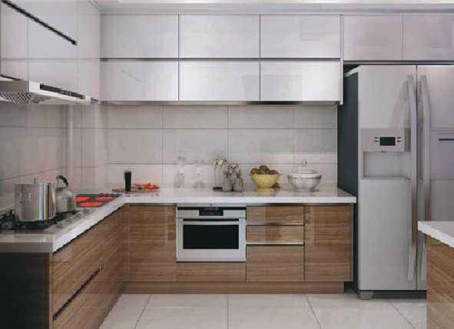 烤漆面板的櫥柜可以做出多種造型,表面光澤度好,不易褪色。不過面板一旦出現磕碰,使家具外型有所損傷,很難修復成原來的樣子。