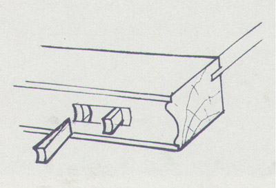 透銷(圖)是在栽銷的基礎上,使銷子延長并通透于其一板材的中心,多見于大型的鐵力、紫檀等床案厚重的牙板與大邊的拍合,十分堅固。