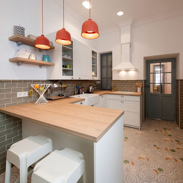 廚房環(huán)境本來就是一個比較擁擠的區(qū)域,防腐地坪漆有效利用更多的空間就十分重要了。例如,吊柜與操作平臺之間的間隙通常是可以利用起來的,放一些烹飪中所需的用具,還可以做成簡易的卷簾門,避免小電器落灰塵。如食品加工機、烤面包機等。